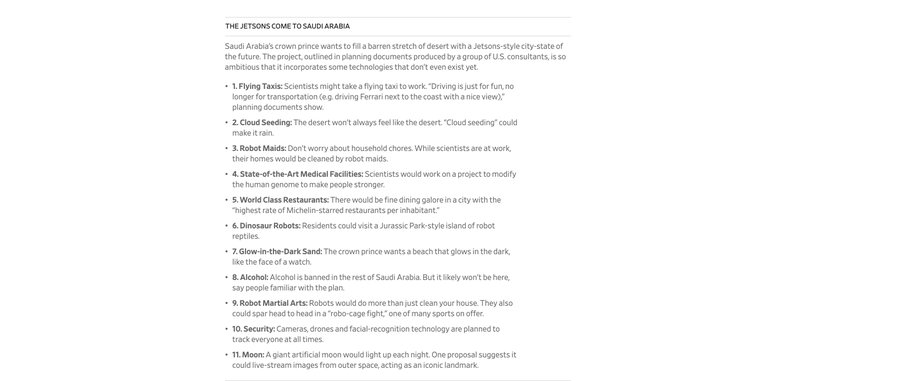 A Prince S 500 Billion Desert Dream Flying Cars Robot Dinosaurs And A Giant Artificial Moon Wsj